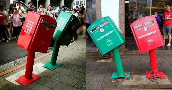 ไต้หวันแห่ถ่ายรูปคู่ "ตู้ไปรษณีย์" หลังไต้ฝุ่นพัดเอียงจนกิ๊บเก๋