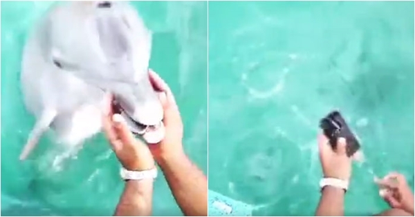 น่ารักที่สุดเลย เจ้าโลมาแสนรู้เก็บมือถือตกน้ำคืนเจ้าของ