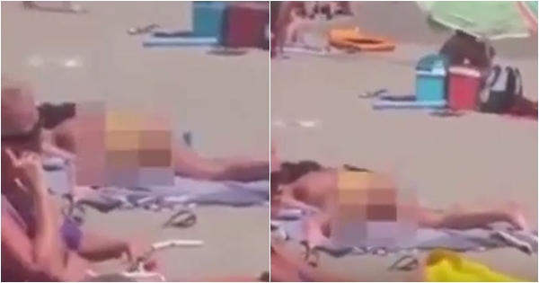 สุดอุจาด สาวเปลือยอกช่วยตัวเองบนชายหาด ไม่สนแม้คนเพียบ