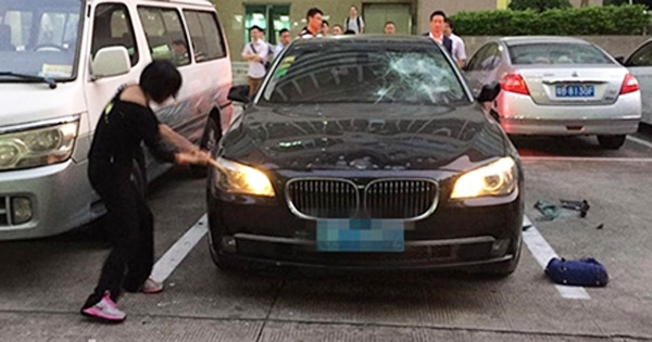 เมียแค้นหนักจับได้ผัวมีชู้ เอาค้อนกระหน่ำทุบรถ BMW เยิน
