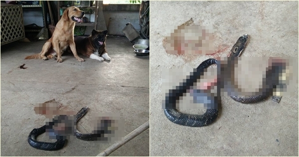 สุนัขโกลเด้นฯ-บางแก้วสายโหด กัดงูเห่าซะขาดครึ่ง เจ้าของบ้านถึงกับช็อก !