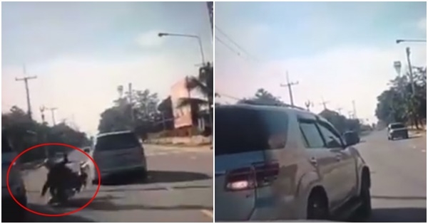 เปิดคลิปรถพุ่งชนมอเตอร์ไซค์จนล้ม ถอยเหยียบซ้ำ แต่งานนี้คดีพลิก