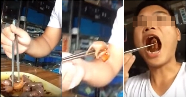 เมนูสยองจากจีน เปิบพิสดารอาหารเหลา ลูกหนูตัวแดง ๆ จิ้มซอสกินทั้งเป็น !