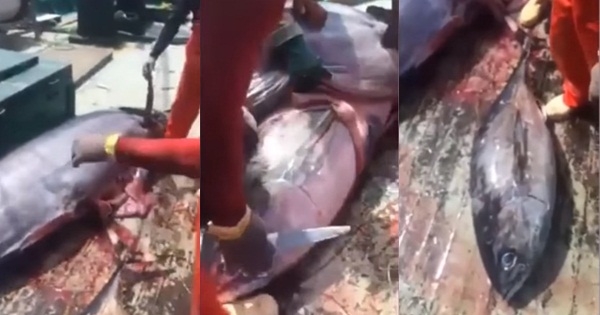 คลิปชวนอึ้ง ชาวประมงผ่าท้องปลายักษ์ เจอปลาตัวเบ้งยังอยู่ในนั้นทั้งตัว !