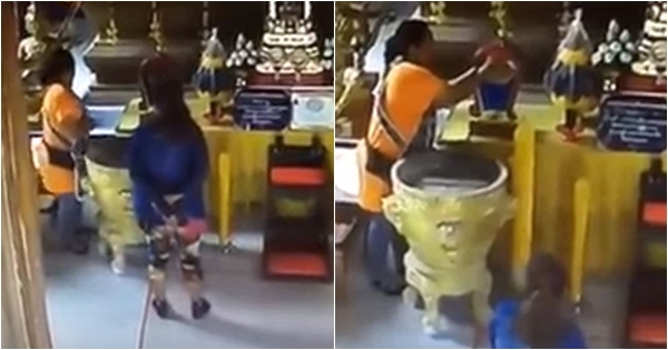 คลิปแฉชัด ๆ มนุษย์ป้าฉกเงินตู้บริจาคในวัด ก่อนหนีลอยนวล