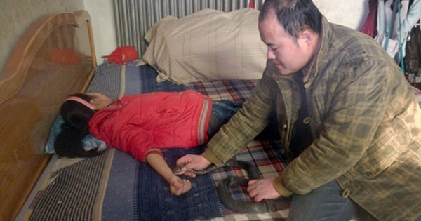 พ่อผุดวิธีแปลก จับงูเห่ามาฉกลูกหวังรักษาโรคร้าย ทำเอาเกือบตาย