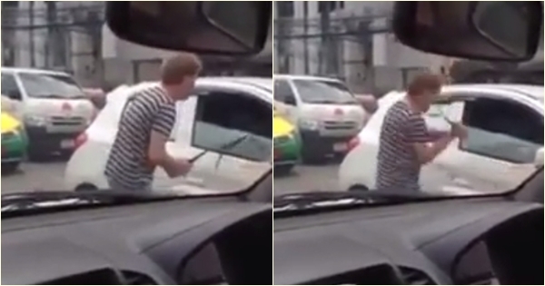 อาละวาด แท็กซี่เอาเหล็กฟาดกระจกรถคันหน้าแตกกระจุย ทั้งที่เจ้าของรถยังอยู่