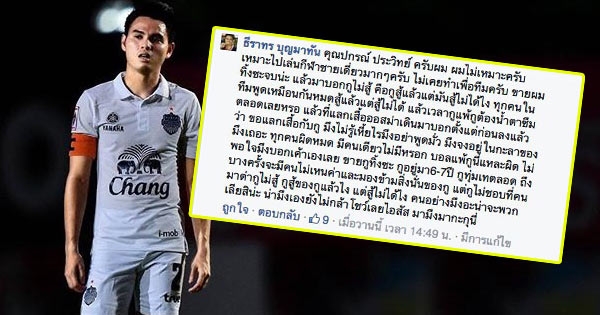 อุ้ม ธีราทร โพสต์ซัด แฟนบอลฉะใจฝ่อ นัดแพ้ 6-0 แต่เพจสโมสรบอก "เห็นด้วย"