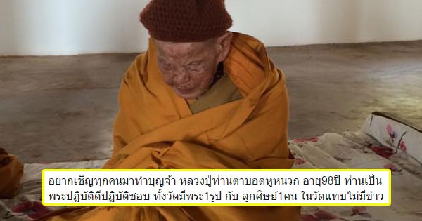 วอนช่วยเหลือ หลวงปู่ตาบอด-หูหนวก อายุ 98 ปี ที่วัดแทบไม่มีอะไรกิน