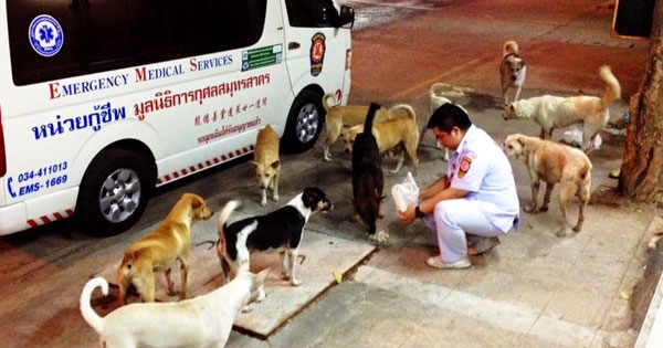 ใจหล่อมาก ! หนุ่มกู้ภัยซื้ออาหารใส่รถพยาบาล เลี้ยงตูบจรจัดนานกว่า 10 ปี