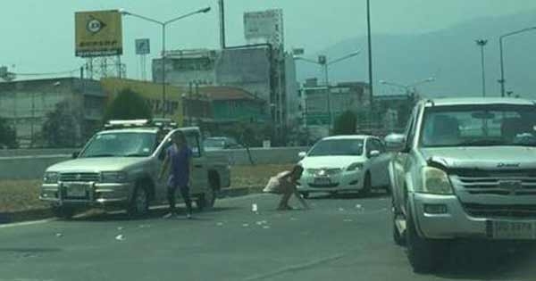 ชุลมุน คนแห่เก็บแบงก์พันปลิวเกลื่อนถนนเมืองเชียงใหม่ ทำรถติดเป็นกิโล