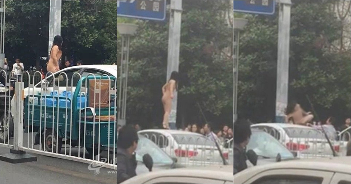 สาวแก้ผ้าเต้นบนหลังคารถ ทำจราจรติดขัด เจอหนุ่มกระชากร่วงแอ้ก สิ้นลายดาวยั่ว