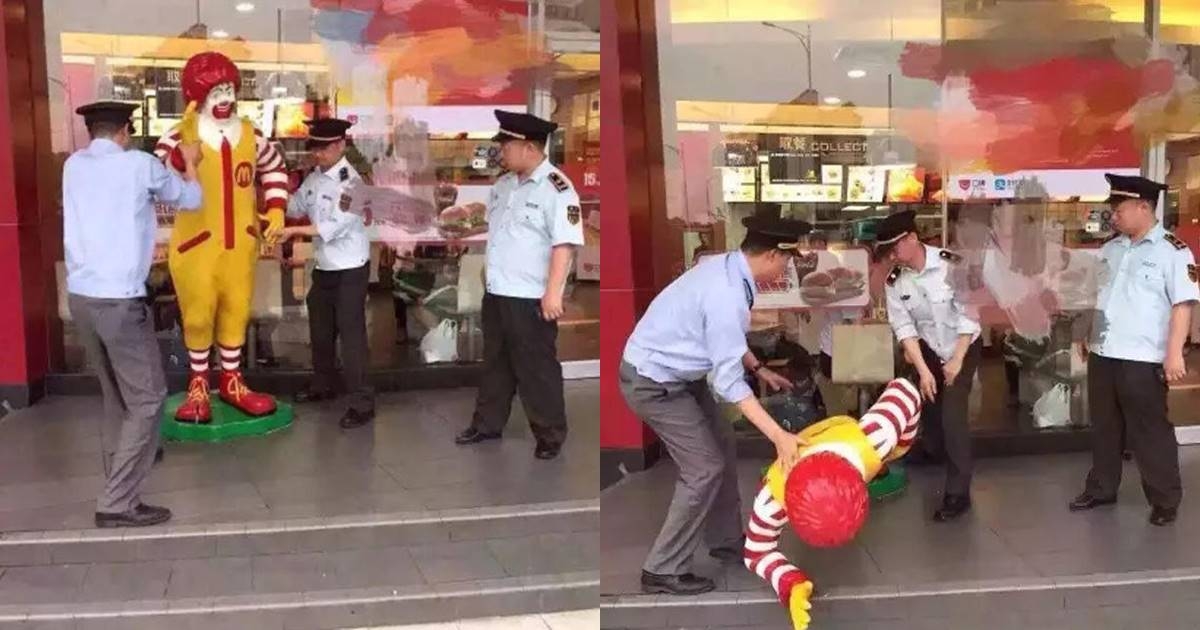 ชาวเมืองตะลึงงัน เทศกิจจับมาสคอตร้านอาหารฟาสต์ฟู้ดดัง เหตุขวางทางเดิน