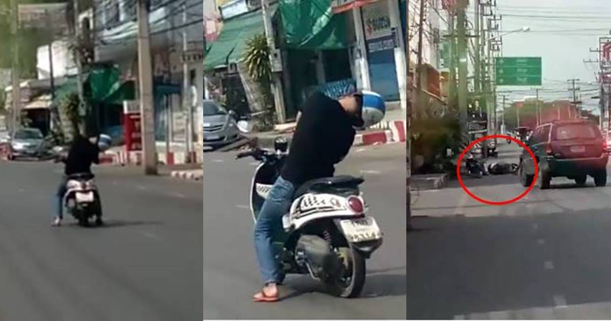 คลิปสุดหวาดเสียว ! หนุ่มคอพับขี่มอเตอร์ไซค์ คล้ายหลับใน-คาดอาจเป็นเพราะป่วย
