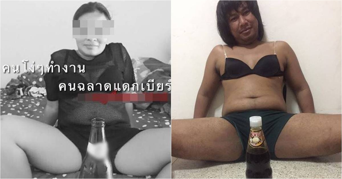 ชาวเน็ตสุดฮา ออกมาโพสต์ภาพวางขวดเบียร์ตรงหว่างขา ล้อป้าเมียน้อยวัยดึก