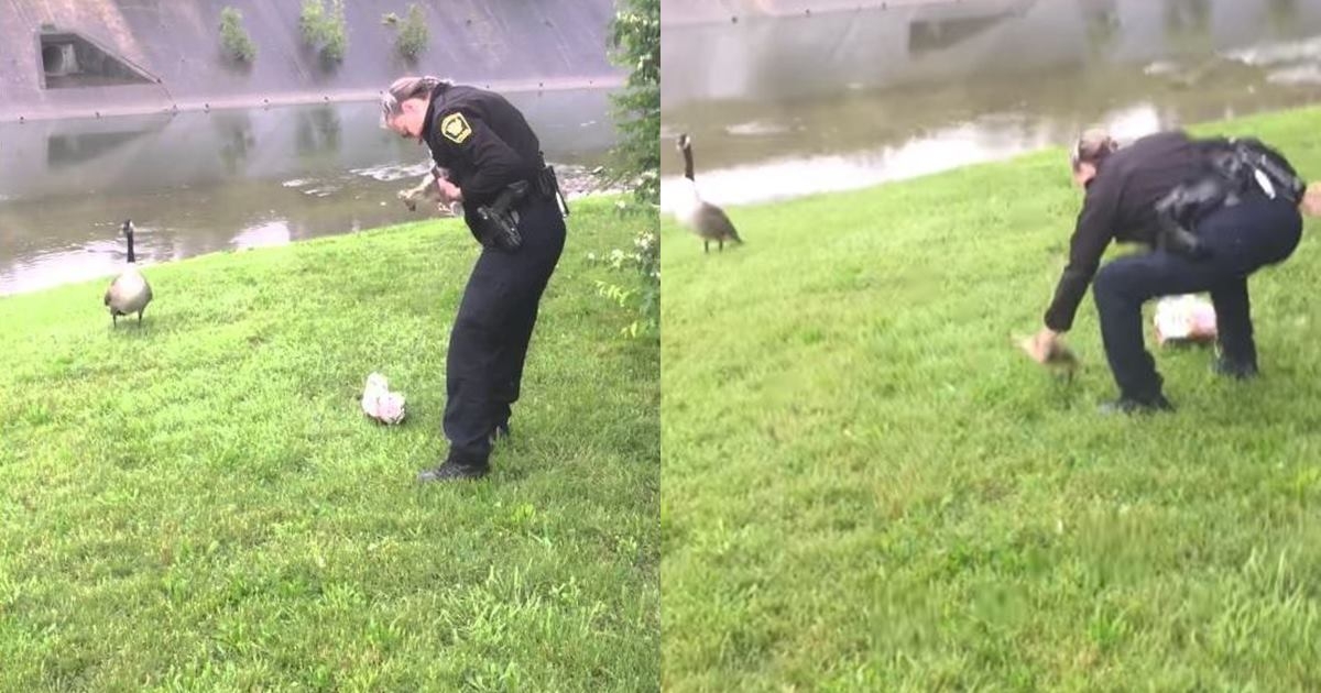 ซึ้ง แม่ห่านจิกรถตำรวจ เพื่อขอให้ช่วยลูกที่ถูกเชือกพันขา (ชมคลิป)