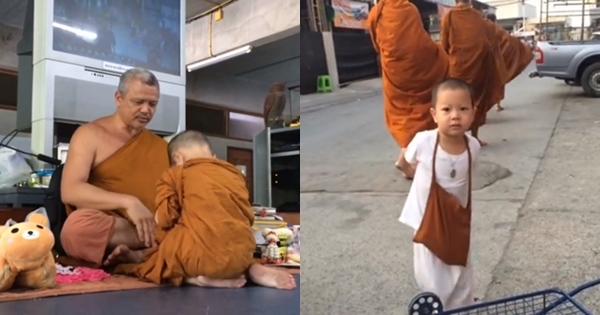 "น้องกร" สามเณรน้อย ลาสิกขาแล้ว แต่ยังขอตามพระอาจารย์ไปบิณฑบาต