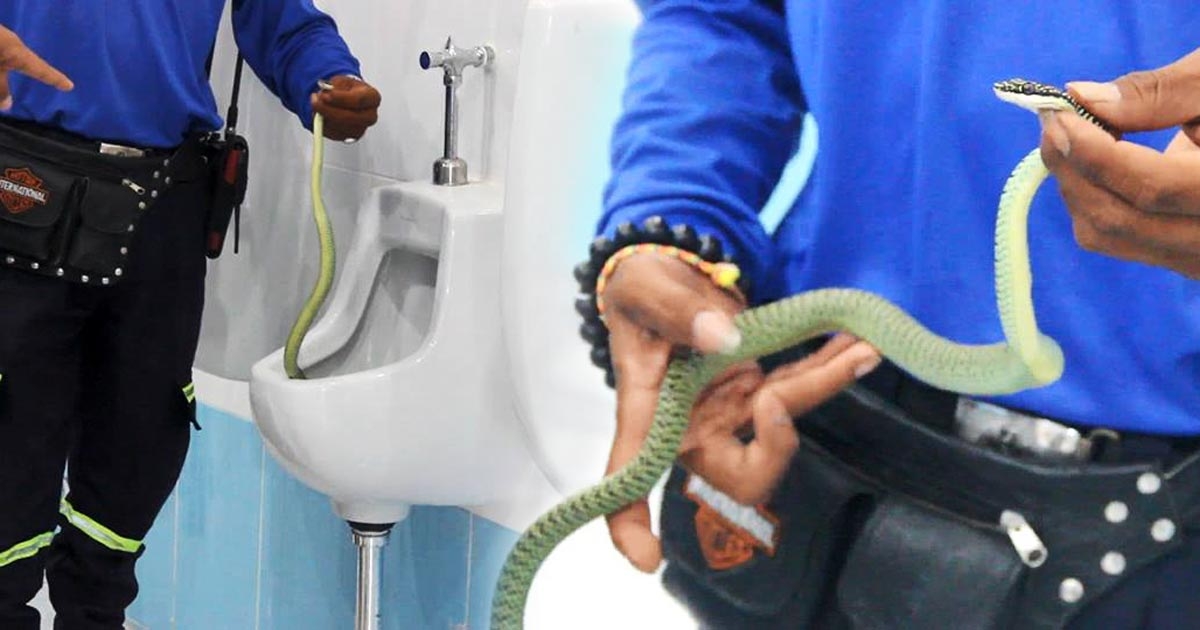 โผล่อีก นักเรียนโคราชสะดุ้ง เจองูเขียว 2 ฟุตขดตัวในโถปัสสาวะโรงเรียน
