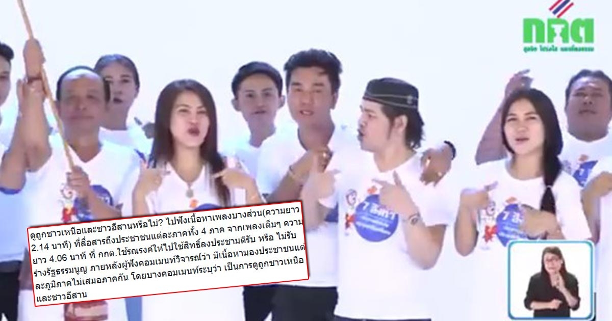 วิจารณ์ยับ เพลงรณรงค์ลงประชามติของ กกต. มองคนแต่ละภาคไม่เสมอกัน