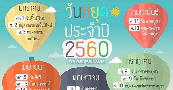 วันหยุด 2560 ปฏิทินวันสำคัญ วันหยุดราชการ ปี 2560