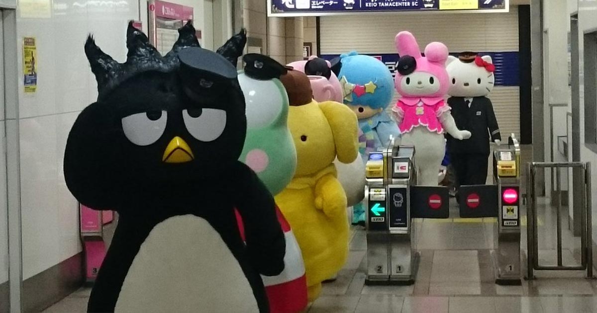 โอ๊ย น่าเอ็นดู เหล่ามาสคอตซานริโอยกขบวนกันไปทำงานที่สถานีรถไฟ