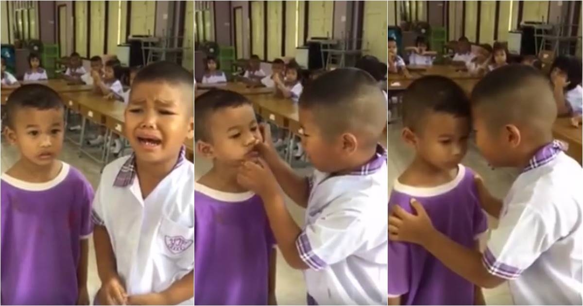 คลิปหนูน้อยร้องไห้สำนึกผิดขอโทษเพื่อน...แต่ทำไมดูแล้วฮาหนักมาก