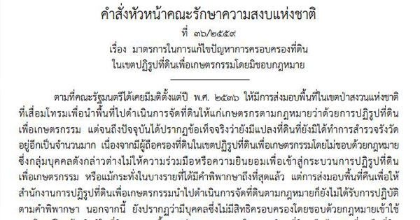 หัวหน้า คสช. ประกาศ ใช้ ม.44 ยึดที่ดิน สปก. ผิดกฎหมาย