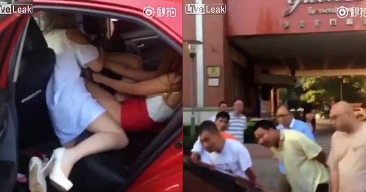 สาวฝรั่งตบกันนัวจนโป๊บนแท็กซี่จีน คุณลุงแห่ส่องดูกันใหญ่ (ชมคลิป)