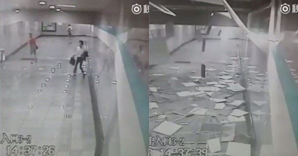 คลิประทึก ผู้โดยสารรีบหนีตาย เดินอยู่ดี ๆ เพดานสถานีรถไฟใต้ดินถล่ม