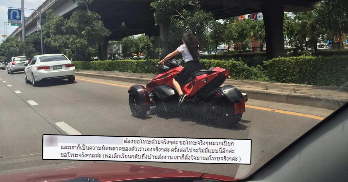 สาวนักศึกษาขี่บิ๊กไบค์ วอนสังคมเห็นใจ ชี้แจงเหตุไม่สวมหมวกกันน็อก
