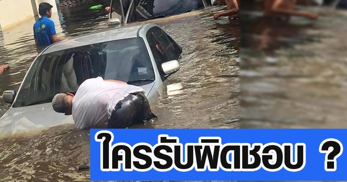 สาวร้องคอนโดปัดความรับผิดชอบ หลังน้ำท่วมลานจอดรถจมมิดครึ่งคัน