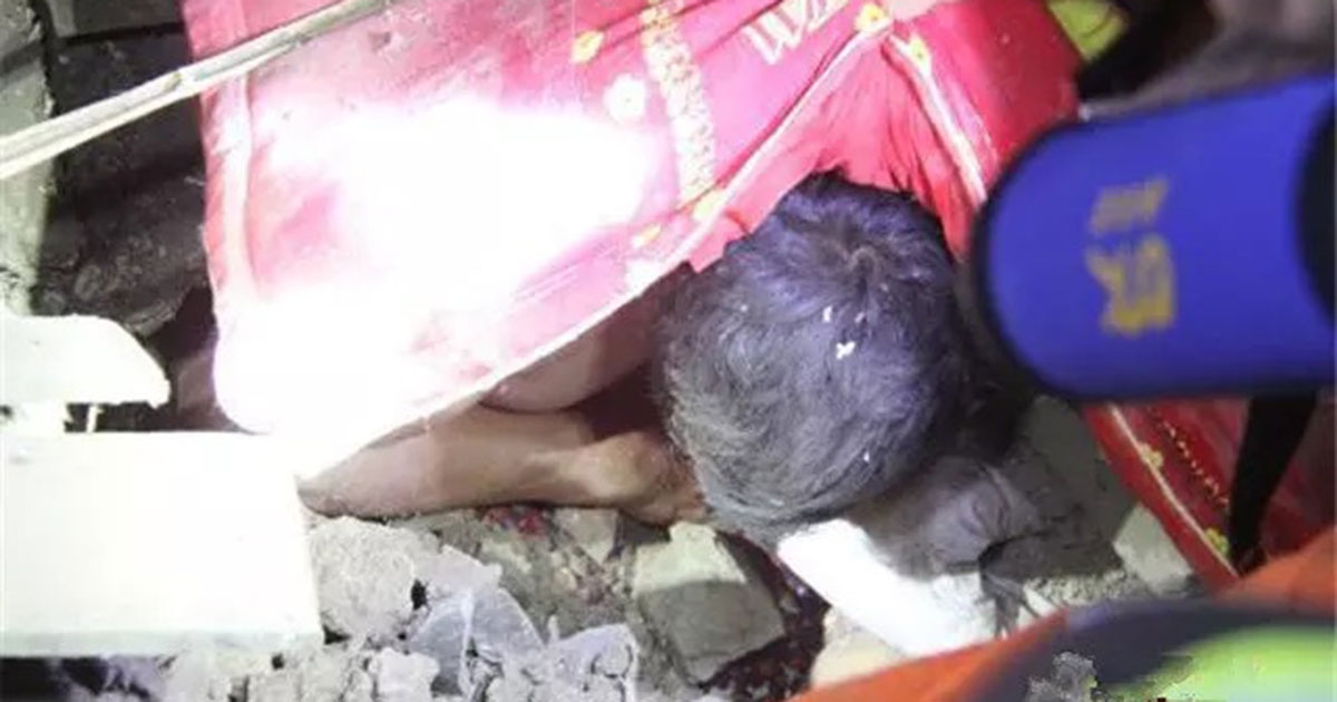 กู้ภัยกู้ซากบ้านถล่ม สุดซึ้งพบพ่อเอาตัวปกป้องลูกน้อยจนรอดชีวิตใต้ซาก