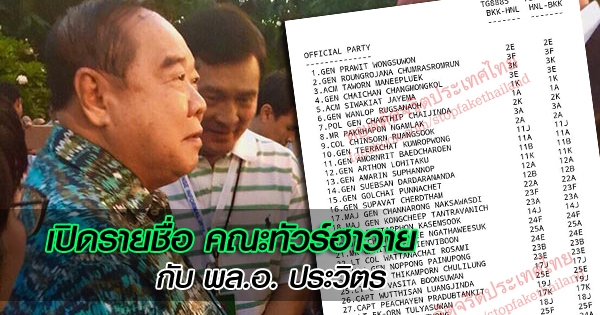 เปิดรายชื่อ คณะทัวร์ฮาวายกับ พล.อ. ประวิตร ทหารอาวุโสร่วมเพียบ !