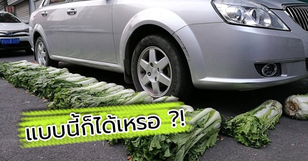 นี่มันอะไร !? วิธีสงวนที่จอดรถแบบใหม่ ใช้ผักกาดวางเรียงไว้ซะเลย