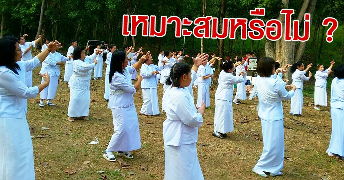 เหมาะสมหรือไม่ ! จัดรำสมาธิอิติปิโส คล้ายชุดถือศีล 8 โชว์งานตักบาตรเทโว สุโขทัย
