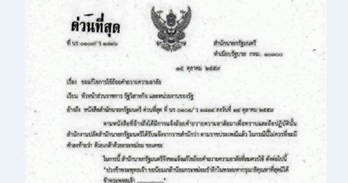 สำนักนายกรัฐมนตรี ประกาศ ขอแก้ไขการใช้ถ้อยคำถวายความอาลัย
