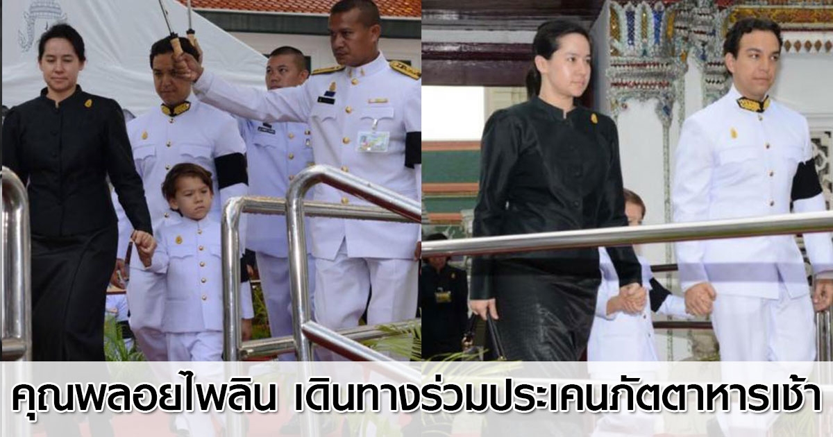 คุณพลอยไพลิน จูงมือคุณแม็กซ์ พระราชปนัดดา รัชกาลที่ 9 ร่วมประเคนภัตตาหารเช้า
