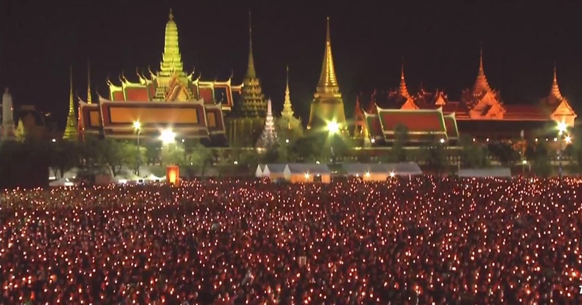 ภาพบรรยากาศผู้คนหลั่งไหลไปที่สนามหลวง ร่วมร้องเพลงสรรเสริญพระบารมี 4 ทุ่ม