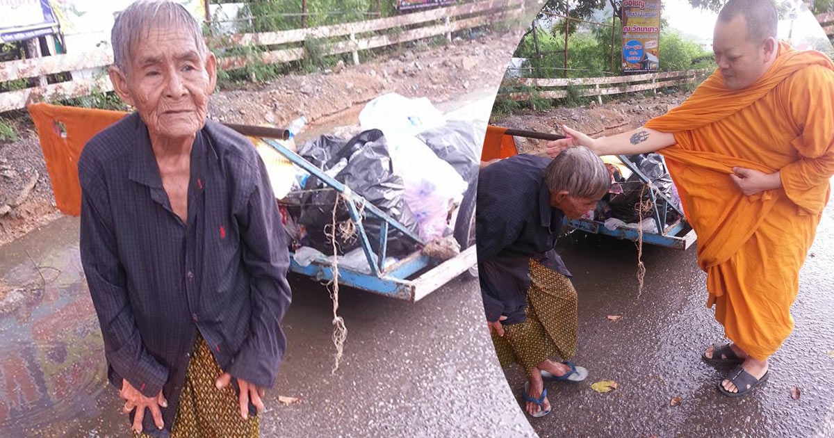 เศร้าบีบหัวใจ คุณยายตากฝนเก็บขวดขาย เหนื่อย-หิวข้าวแทบเป็นลม