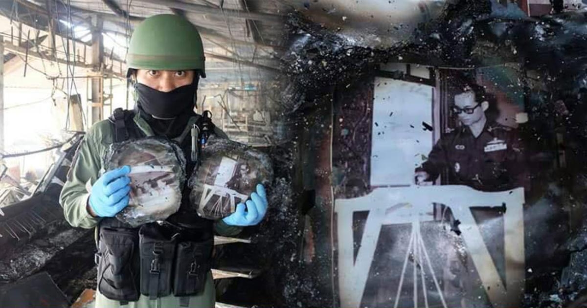 ด้วยพระบารมี... ไฟไหม้ปั๊มน้ำมันปัตตานี แต่พระบรมฉายาลักษณ์ในหลวง ไม่ไหม้