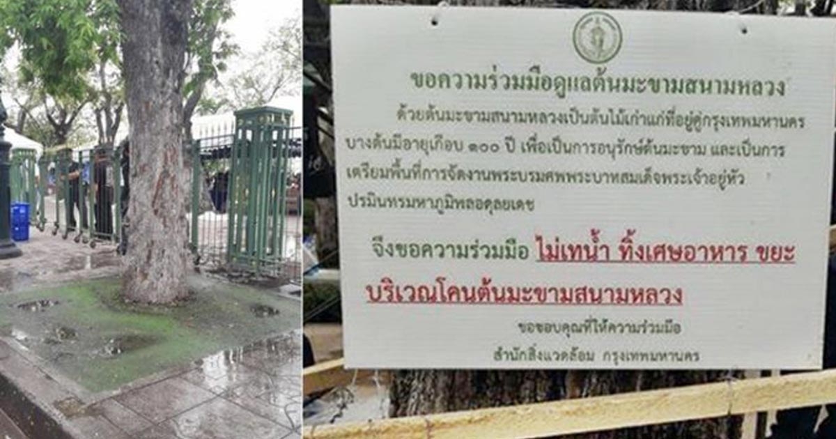 เร่งฟื้นฟูต้นมะขาม อายุเกือบ 100 ปี รอบสนามหลวง หลังแช่น้ำเน่า-ขยะที่คนทิ้งไว้โคนต้น