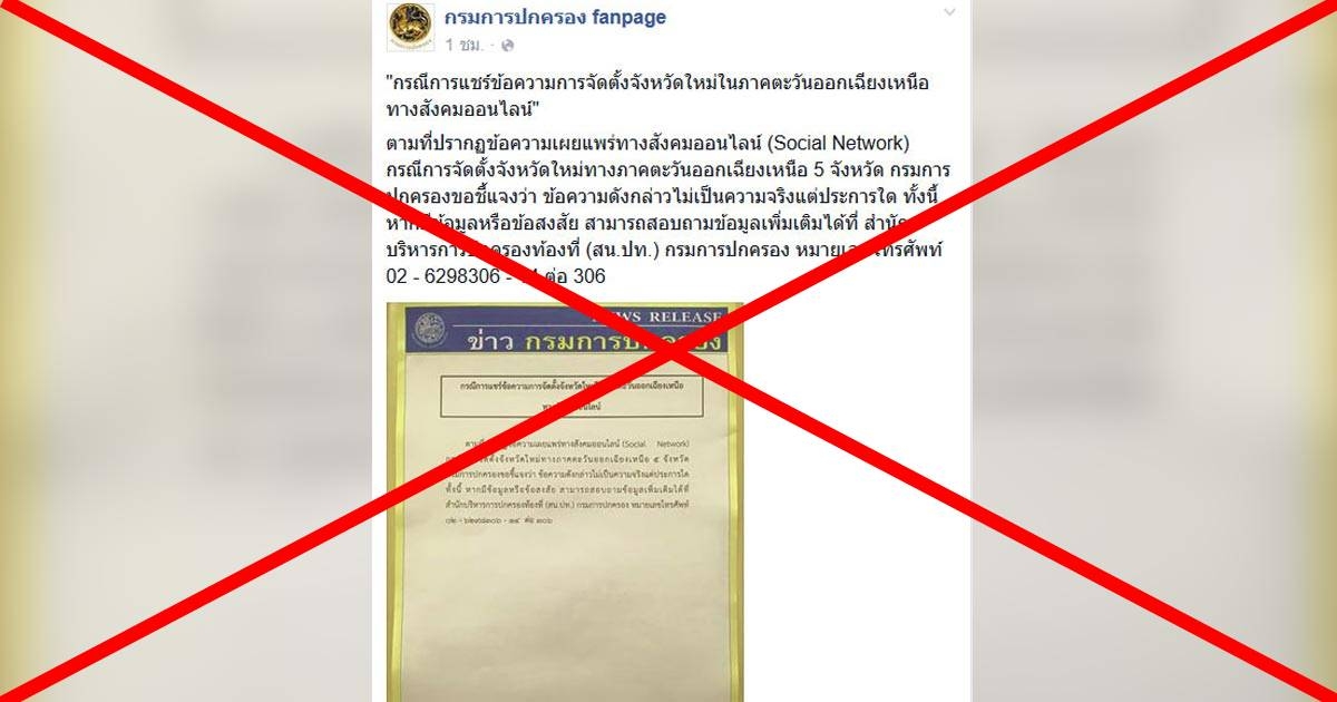 มั่วและเก่า สะพัดว่อนโซเชียล ข่าวตั้ง 5 จังหวัดใหม่ภาคอีสาน