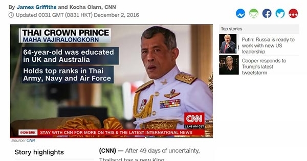 สื่อทั่วโลกรายงาน สมเด็จพระเจ้าอยู่หัวมหาวชิราลงกรณฯ ขึ้นทรงราชย์
