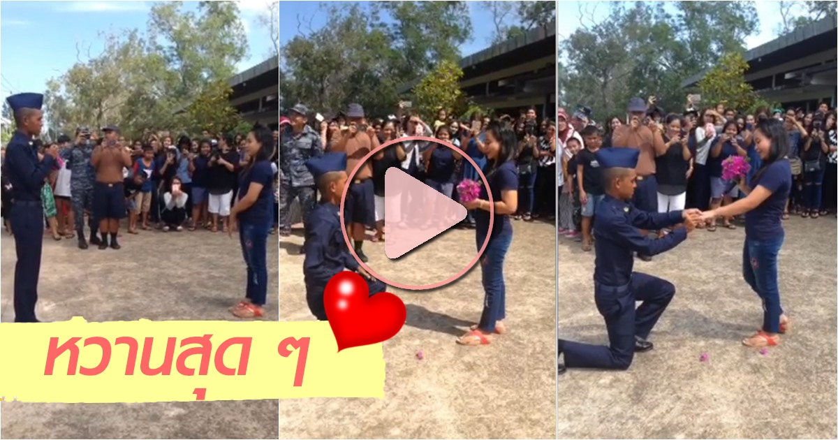 หวานมาก คลิปหนุ่มทหารอากาศ คุกเข่าขอสาวแต่งงาน ท่ามกลางพยานรักนับร้อย