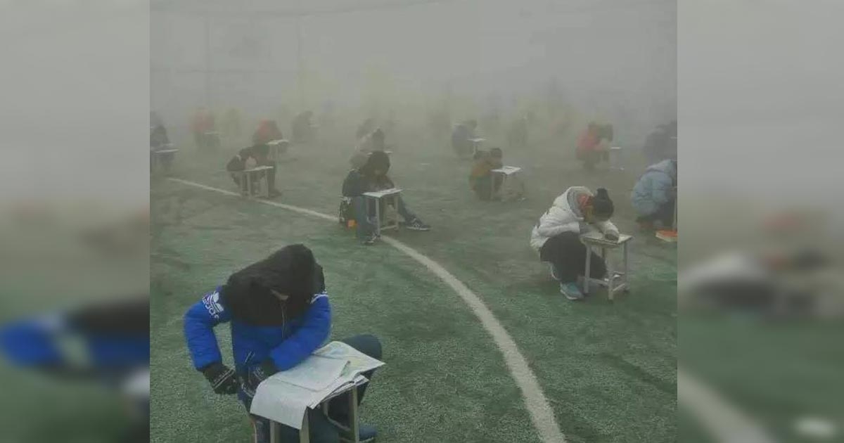 วิจารณ์สนั่น โรงเรียนจีนจัดสอบกลางแจ้ง ทั้งที่มีปัญหาหมอกควันในระดับอันตราย