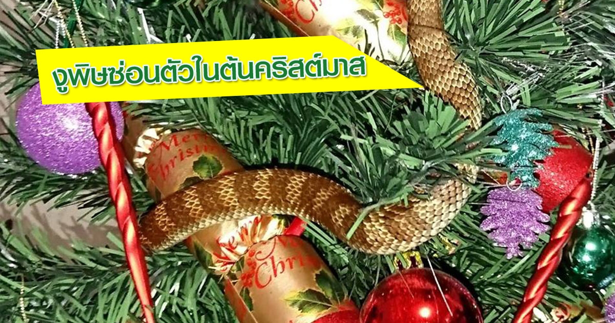 ผวาแรง ! สาวผงะ เจองูพิษซ่อนตัวในต้นคริสต์มาส เนียนไปกับของประดับ