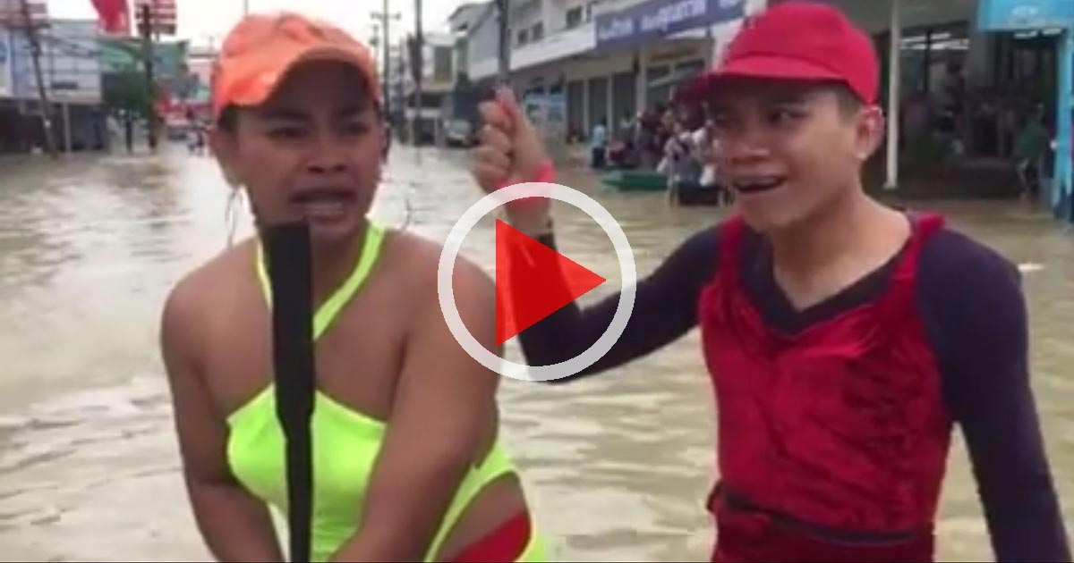คลายเครียดน้ำท่วมภาคใต้ 2 เทย รายงานสถานการณ์สด แอ็คติ้งชนะเลิศ !!