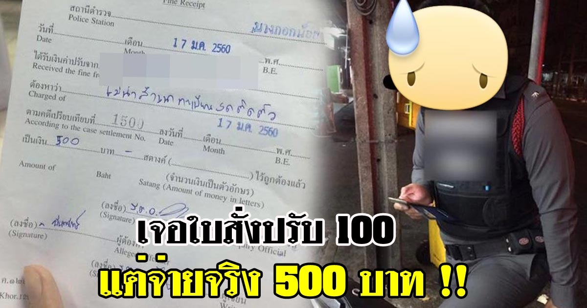 หนุ่มสุดงง โดนข้อหาไม่พกสำเนารถ เจอใบสั่งปรับ 100 แต่จ่ายจริง 500 บาท