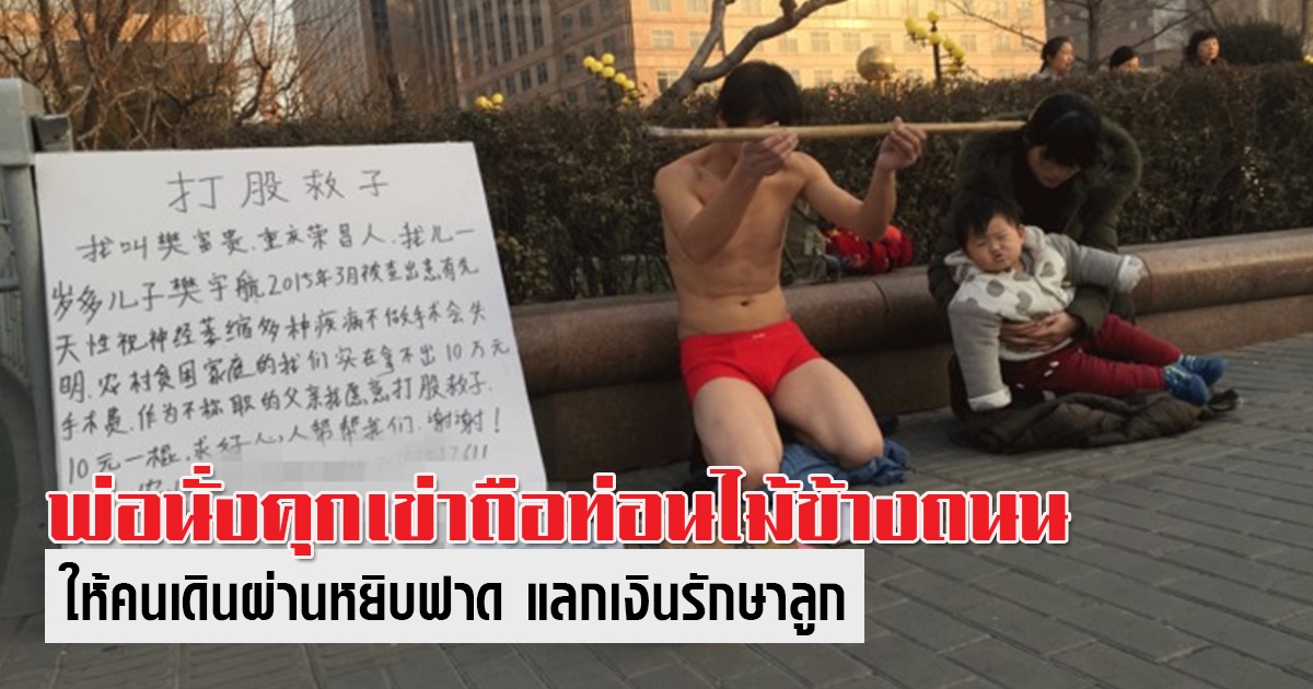 พ่อสิ้นหวัง นั่งคุกเข่าถือท่อนไม้ข้างถนน ให้คนหยิบฟาดแลกเงินรักษาลูก