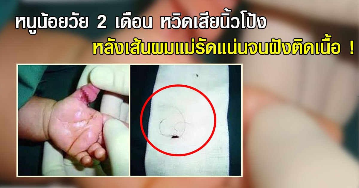 อุทาหรณ์ หนูน้อยวัย 2 เดือน หวิดเสียนิ้วโป้ง หลังเส้นผมแม่รัดแน่นจนฝังติดเนื้อ !